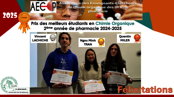 24 novembre 2025 : pour la 2ème année consécutive, remise du prix AECOP des meilleur(e)s étudiant(e)s de DFGSP2 en Chimie Organique